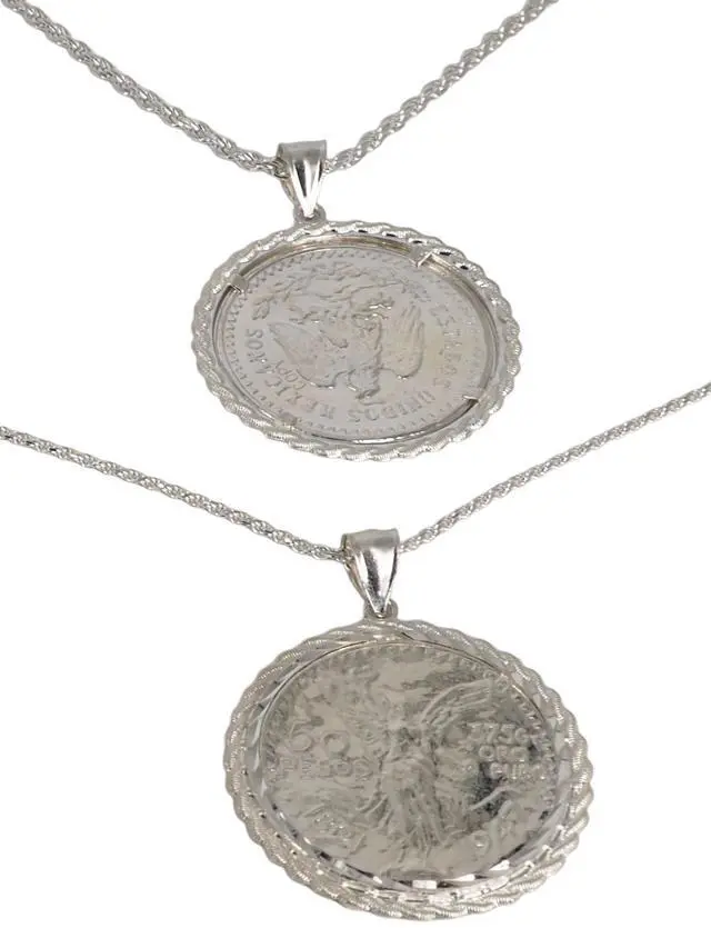 Celebrate timeless Mexican heritage with this stunning MST 925 Sterling Silver Mexican 50 Peso Centenario Coin Pendant.