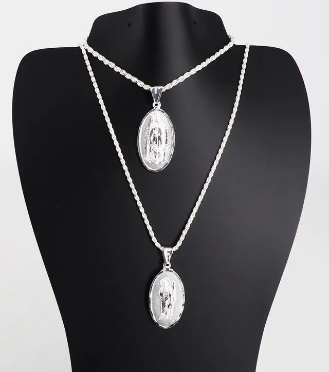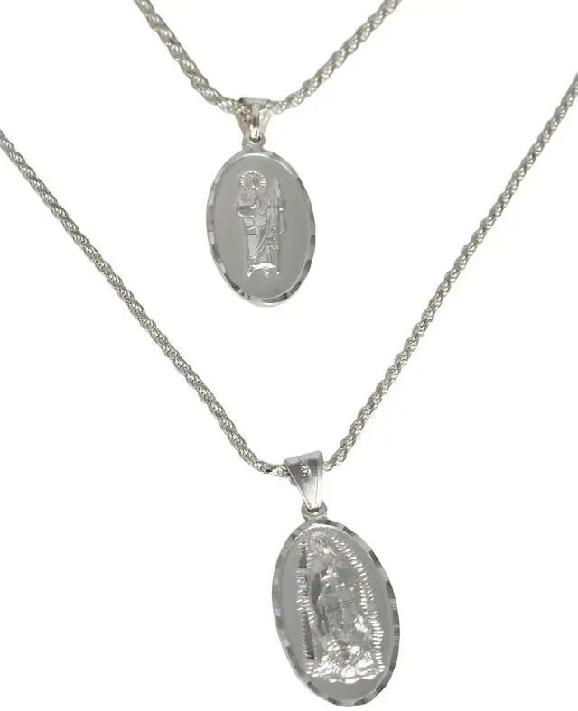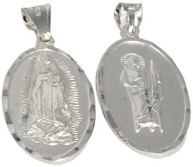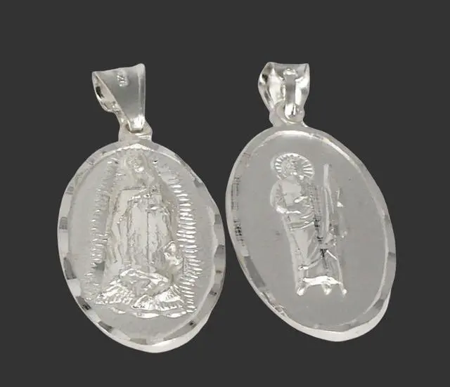 MST 925 Sterling Silver Guadalupe & Saint Jude 2-Sided Pendant Necklace Unisex, All Ages