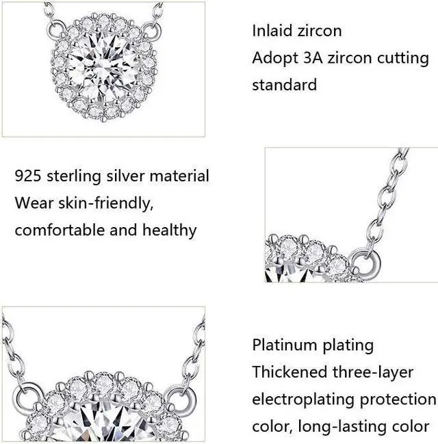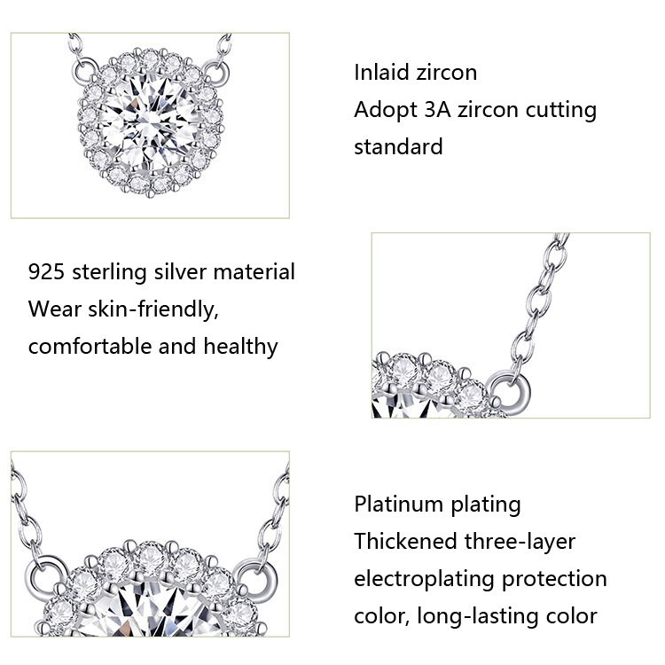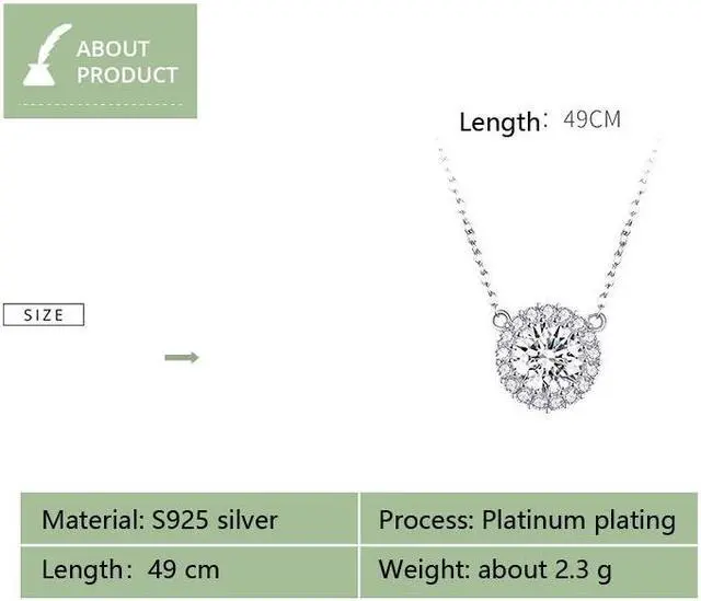 1. Material: 925 silver, zircon, platinum plated 2. Treatment process: electroplating 3. Use gender: female 4. Size: total chain length: 49 cm 5. Weight: about 2.3 g 6. Packing: PP bag 7. Main stone: zircon