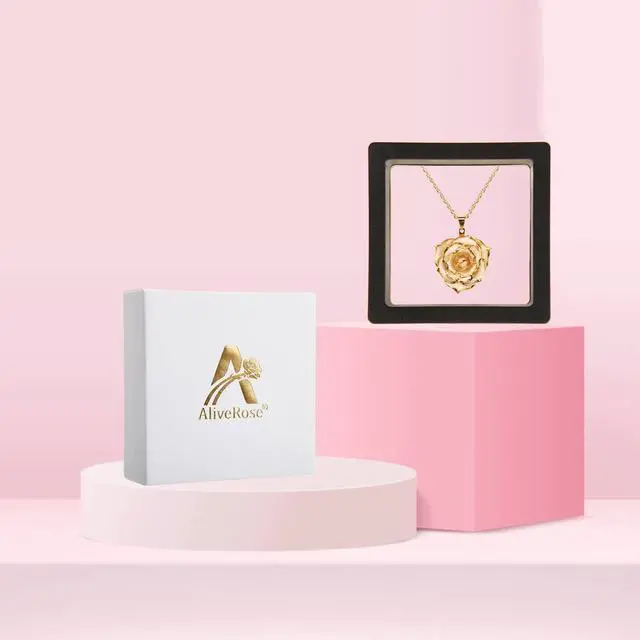 AliveRose Gold-Plated Necklace Gifts for Women, 24K Gold-Plated Real Rose Pendant Necklace Mothers Day Anniversaries Birthday Christmas Valentine's Day Gifts for Her (Ivory)