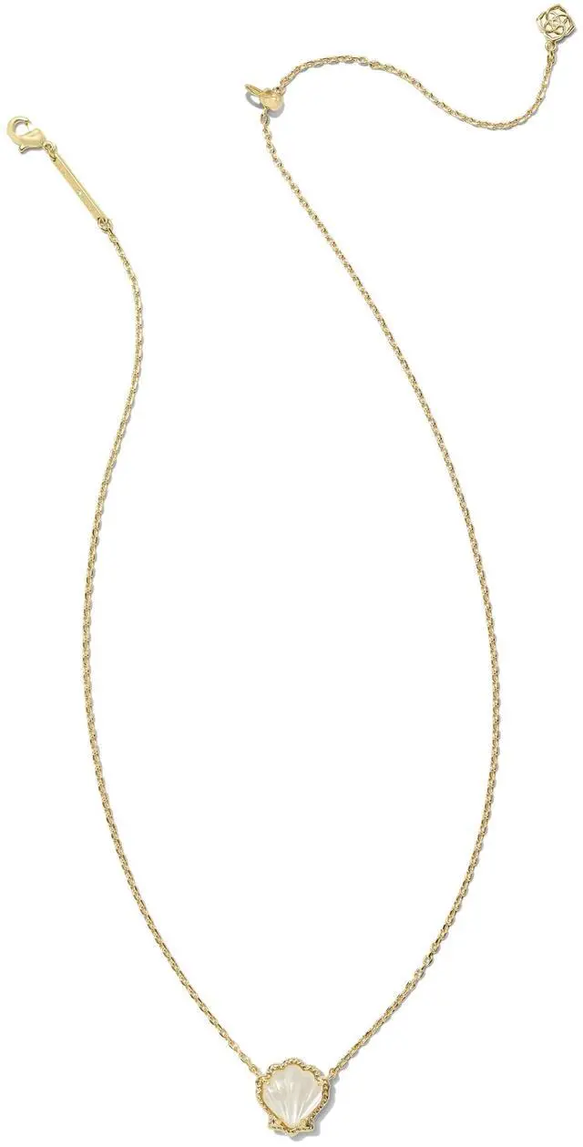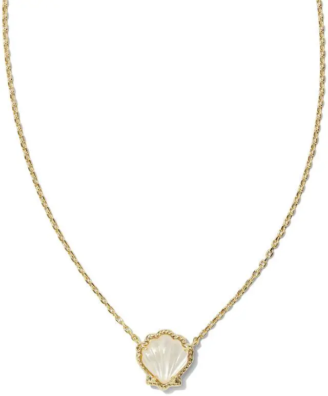 Shell-shaped pendant in Ivory Mother-of-Pearl with etched grooves for added texture and signature Kendra Scott hoofprint detailing on its frame