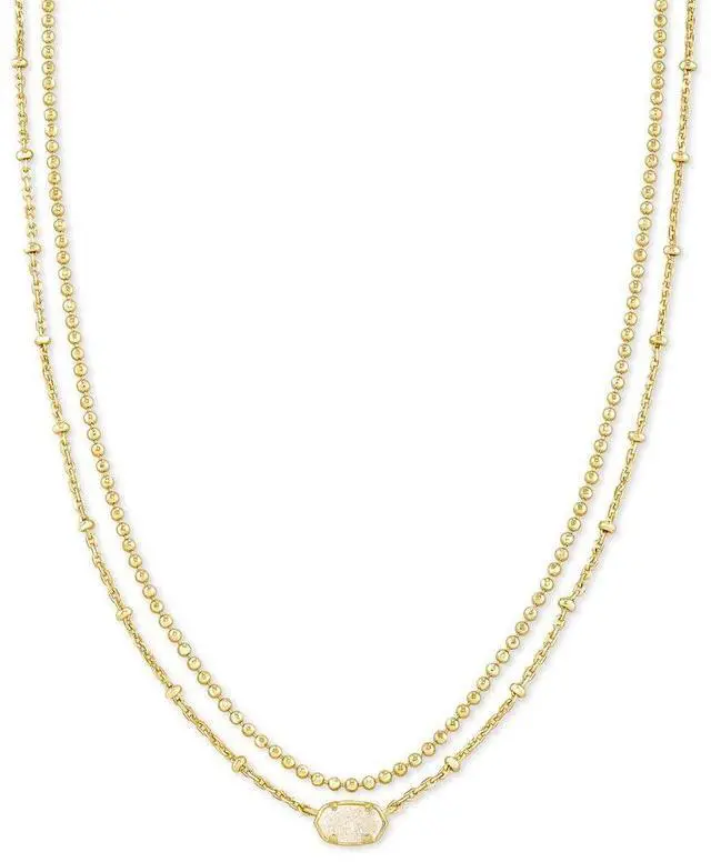Pull off an effortlessly layered look in the Emilie Gold Multi Strand Necklace in Iridescent Drusy. Mini versions of our most iconic silhouettes and delicate Chains put us in the freshly-showered-sun-soaked-warm-kinda mood.