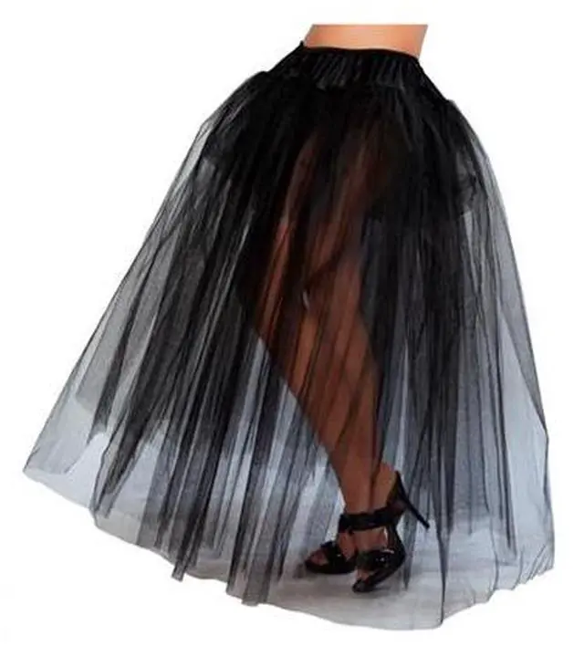 Give that gown or long dress of yours some volume when you wear the Full Length Adult Black Petticoat underneath it. This long sheer petticoat is black and reaches the floor. It is perfect to wear underneath long dresses or skirts because it makes it look