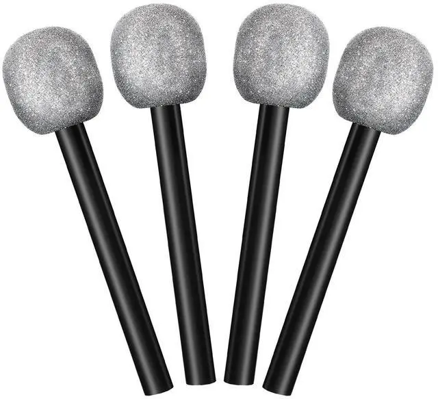 Toy microphone set: you will get 4 packs silver glittered microphone in a package