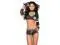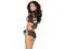 This alluring Football Fantasy costume features a mesh cami top with long sleeves, number detail and blue collar and matching booty shorts with lace up front.