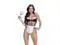 - Stretch satin and mesh romper with lace appliques - Nonfunctional dome button detail - Adjustable halter neckline - Satin micro apron with lace ruffle detail