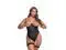 - Flocked leopard mesh - Open cup with underwire - Adjustable leg garters - Cotton gusset - G-string thong back - Crotchless