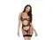 - Embroidered rose lace and stretch satin - Balconette cup with underwire - Satin ribbon bow detail - Hook and eye closure - Adjustable garter straps and steel boning - Cotton gusset - Single string thong back