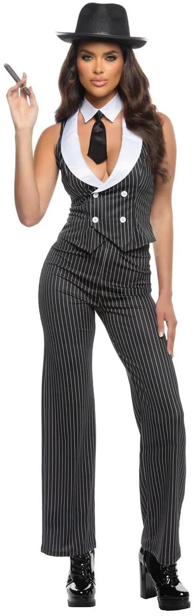 Roma Costume 3pc Gorgeous Gangster, Black/White, L