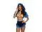 Includes: Velvet and faux fur hooded bolero, Â high waisted shorts, and cookie print bra