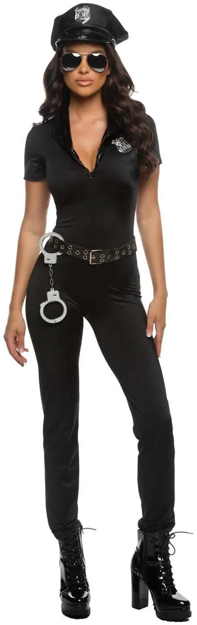 • Includes: Knit bodysuit, belt, hand cuffs, and hat