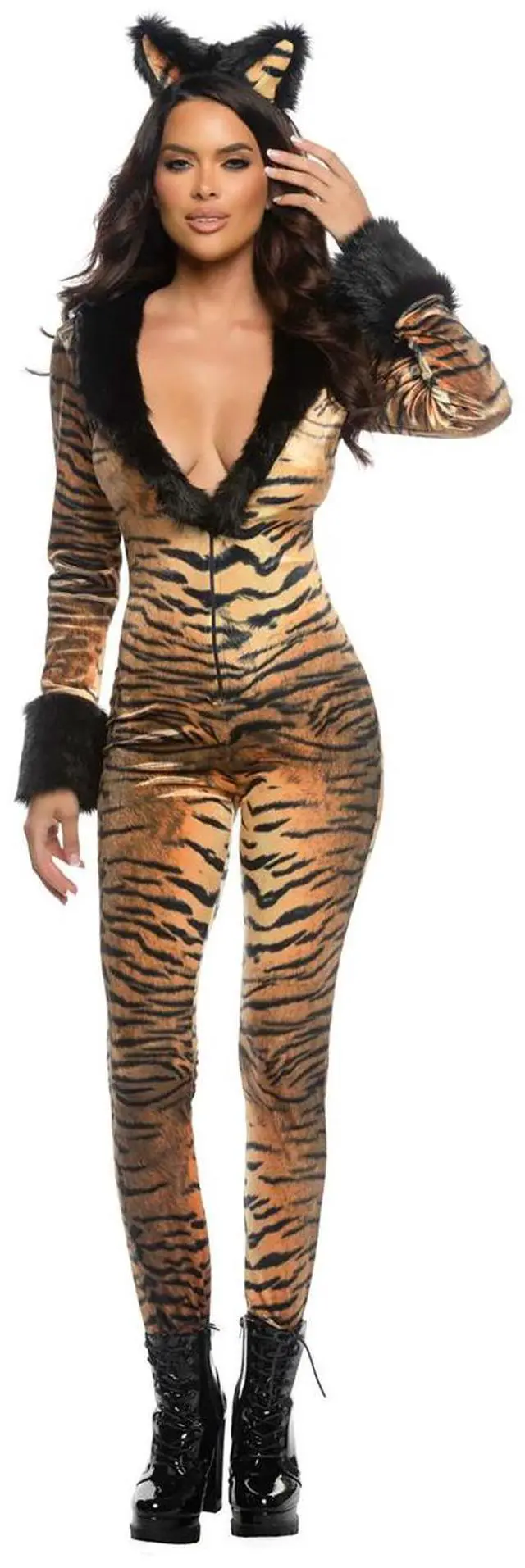 Includes: Printed Tiger and faux fur bodysuit and headpiece
