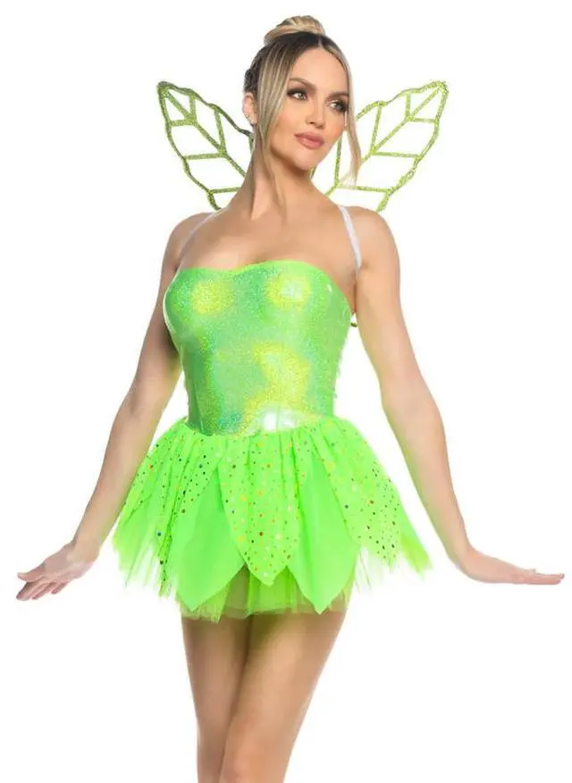 • Includes: Glitter spandex and mesh dress, tulle skirt, glitter translucent wings