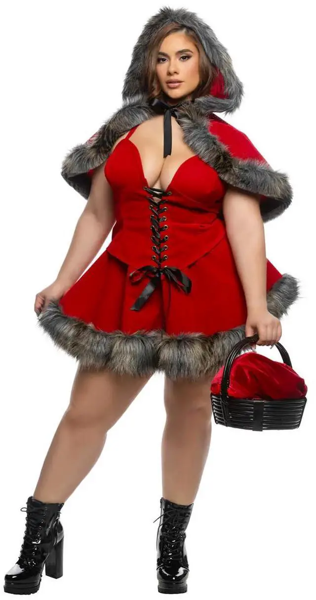 • Includes: Velvet and faux fur hooded capelet, corset top and skirt