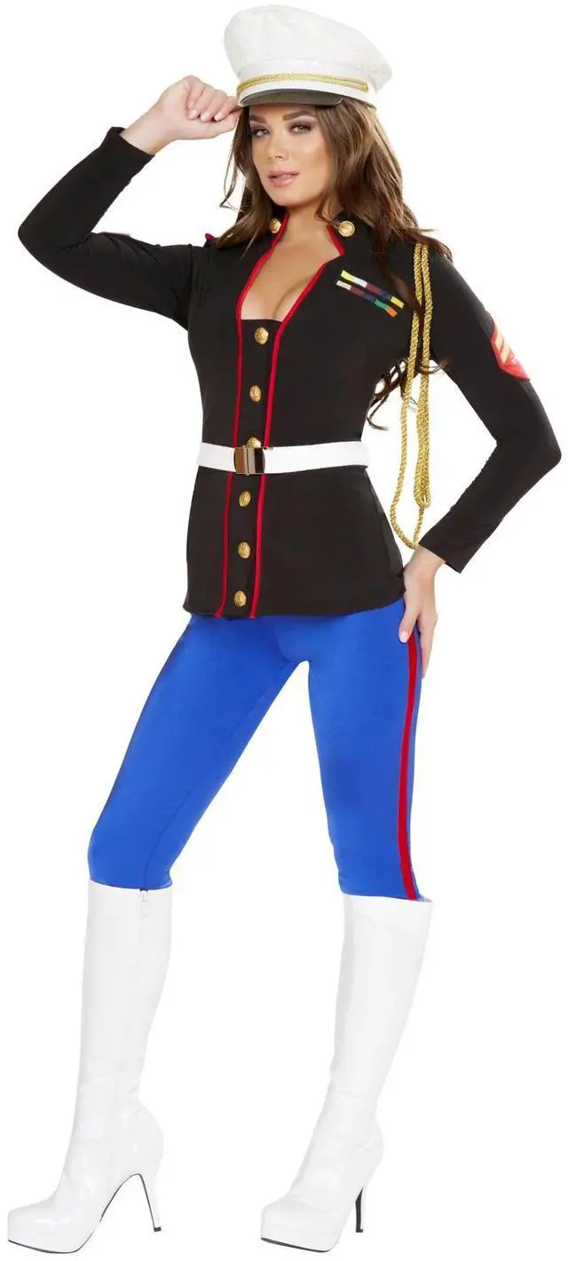 Roma Costume 3pc Sexy Marine Corporal, Black/Blue/Red, M