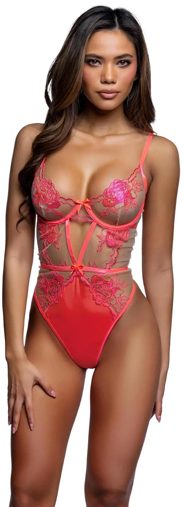 • Embroidered metallic peonylace and stretch satin, Demicup with underwire, Satinribbon bow detail, Hook &eye closure, Cotton gusset,Single string thong back