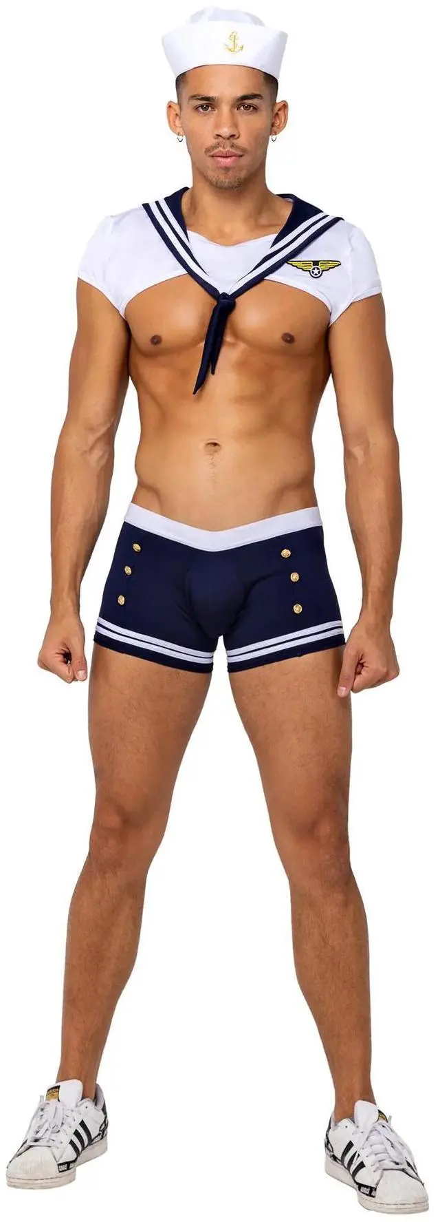 Roma Costume 3PC Men's Sailor Stud, White/Blue, L