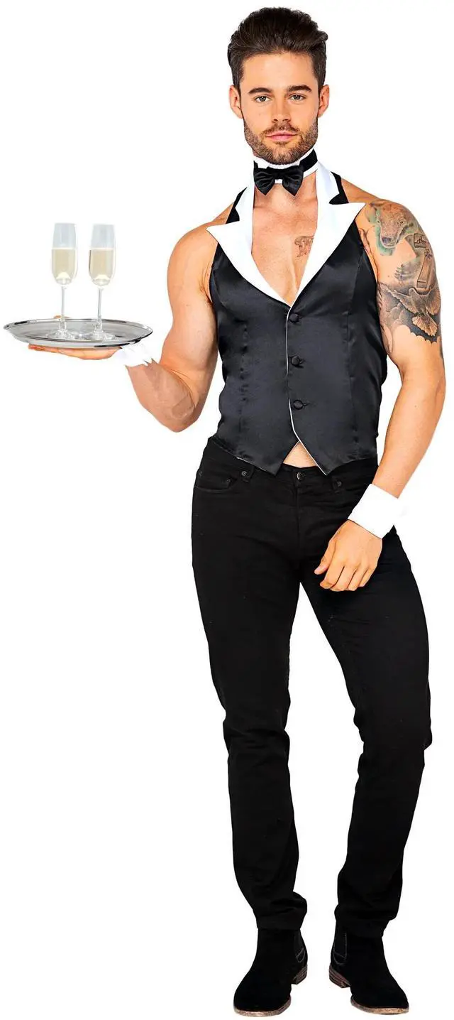 Roma Costume 4pc Butler Beefcake, Black/White, S