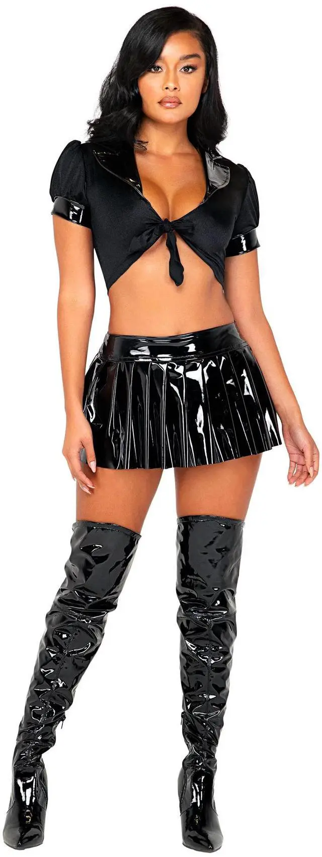 Roma Costume Schoolgirl Collared Tie Top, Black, One Size