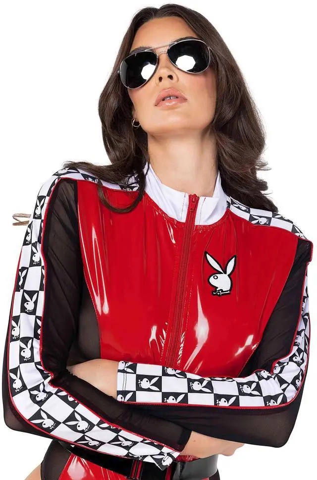 Includes Vinyl & Mesh Romper with Bunny Head Printed Sleeves & Bunny Patch, & Vinyl Belt