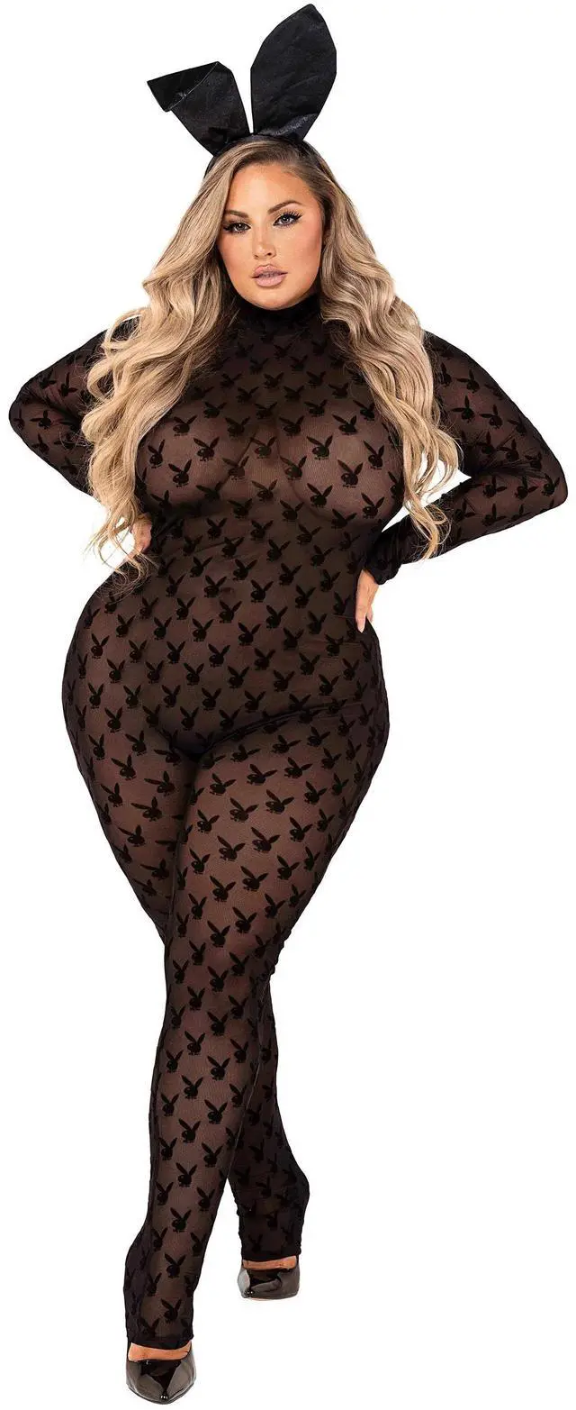 Includes Sheer Bunny Flocking Bodysuit with Zipper Closure & Bunny Ears