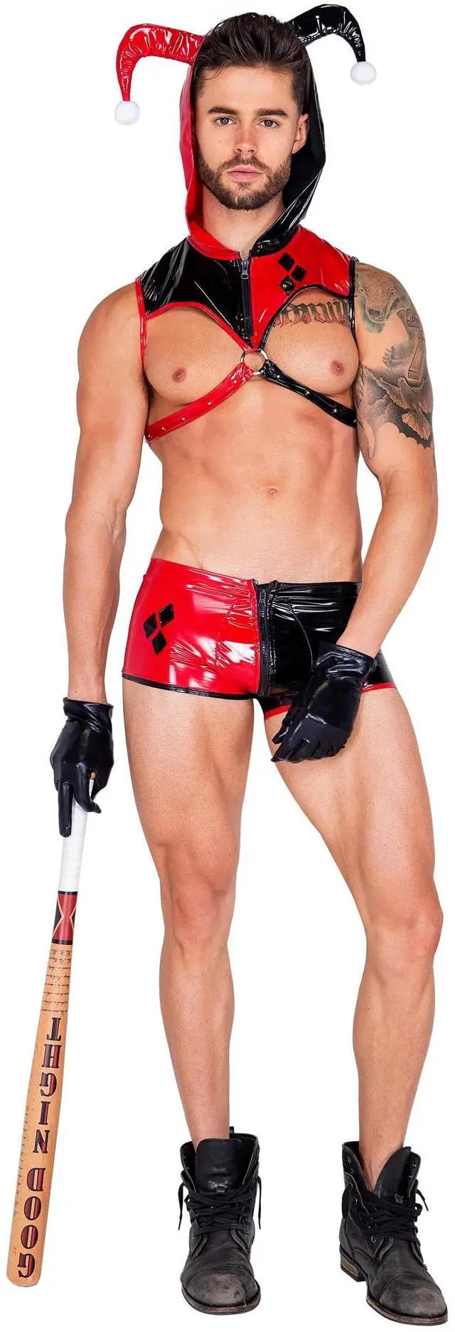 • Roma Costume 2pc Nobodys Fool Jester, Black/Red, L