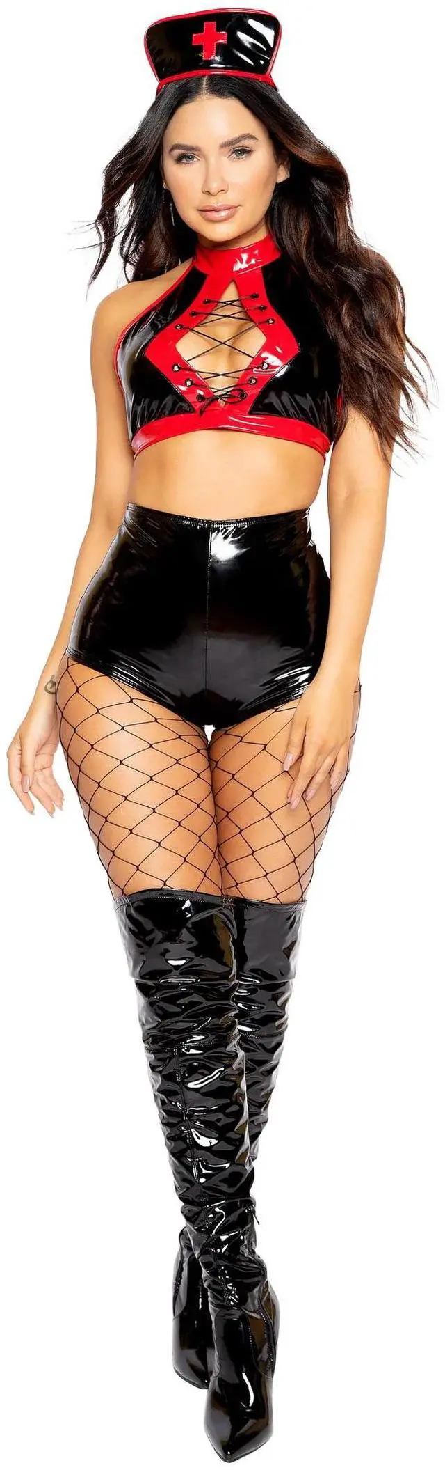 • Roma Costume 3pc Kinky Nurse, Black/Red, L