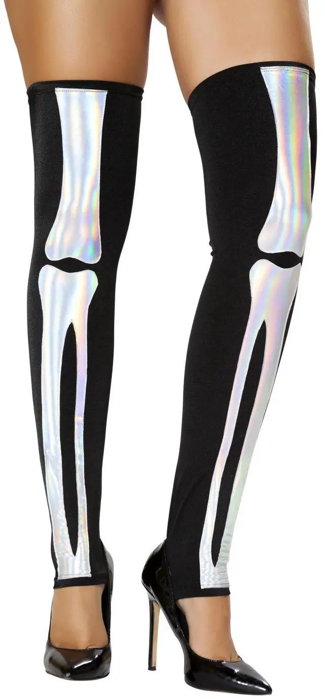 Roma Costume Skeleton Leggings, Black/Silver, One Size