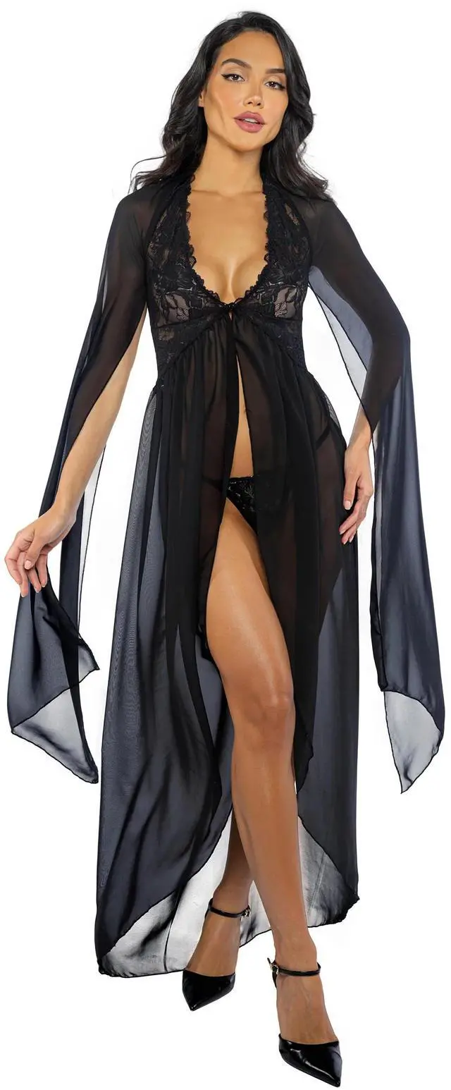 Roma Costume Smoldering Maxi Nightgown 2-Piece Set, black, L