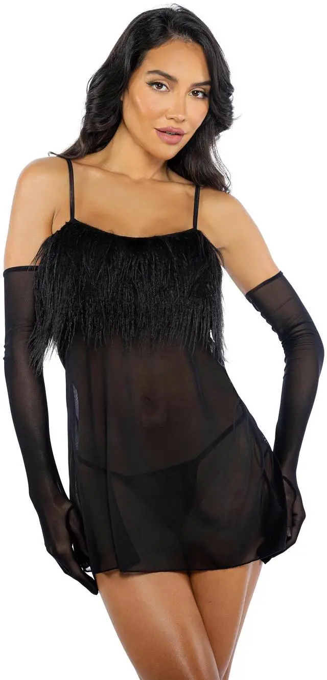 Roma Costume Amelia 2-Piece Feather Babydoll, black, L
