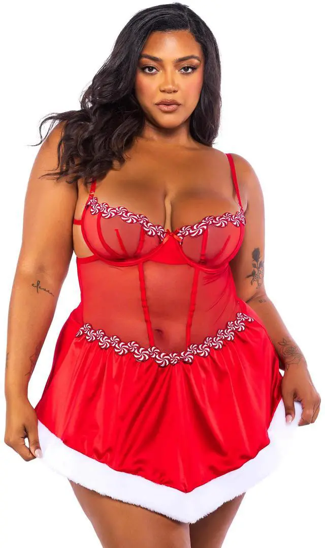 Roma Costume Peppermint Kiss Babydoll, red, 2X