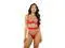 Embroidered candy trim with mesh and satin, Balconette cup with underwire, Satin ribbon bow detail, Steel boning, Single string thong back, gusset, Hook and eye closure