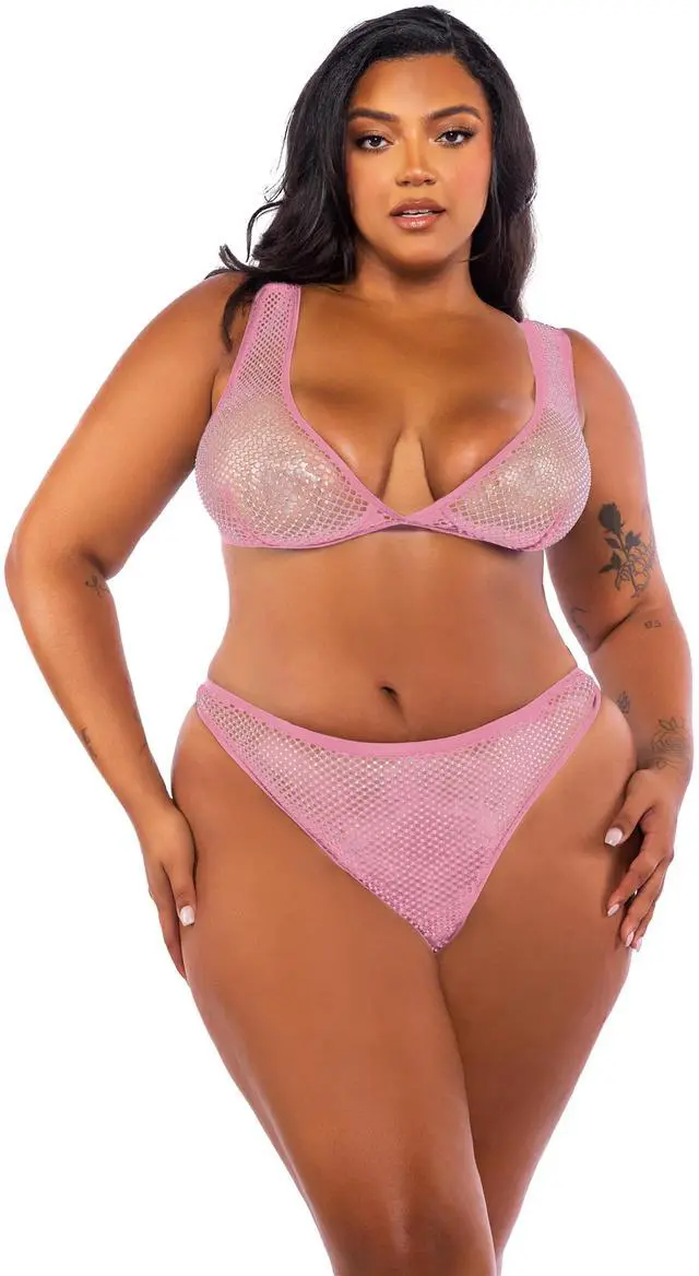• Bralette : Plunge neckline, Rhinestone fishnet, Fold over elastic trim