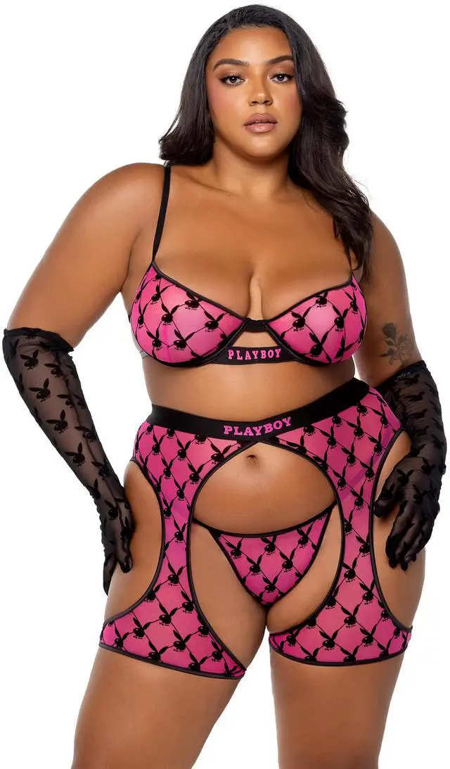 • BRALETTE:Play bunny logo flocked printed mesh satin binding, Plunge neckline, Play logo elastic, Hook Eye Closure