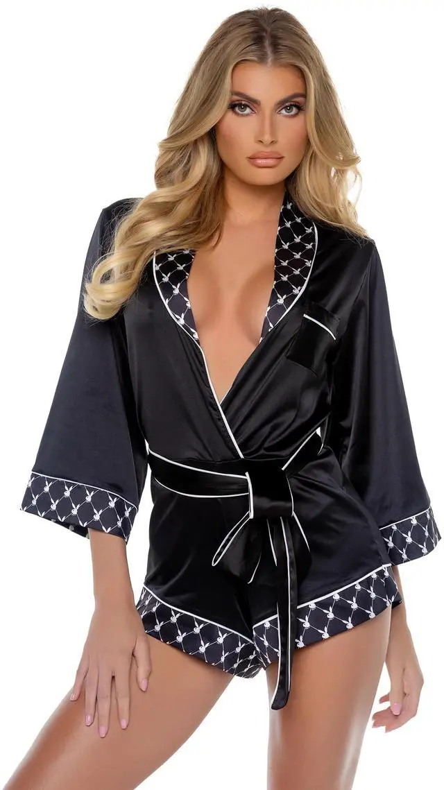 Roma Costume Play Bunny Smoke Lounge Romper, Black, XL