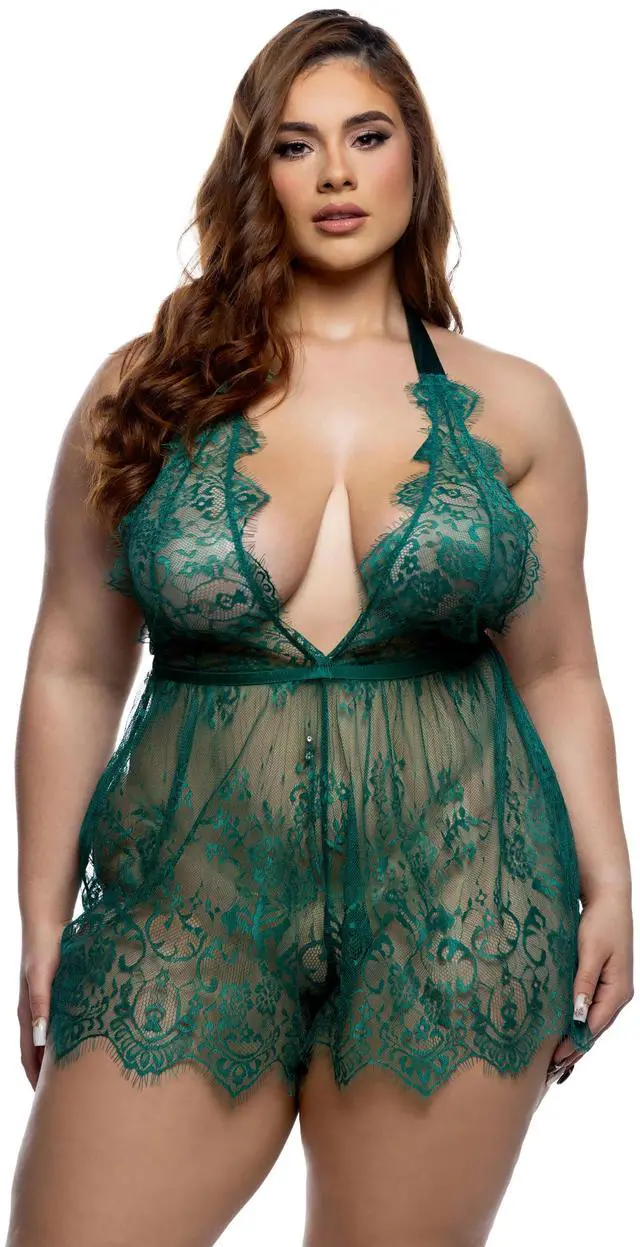 • Eyelash scallop floral lace, Halter style with plunging neckline, Elastic waist