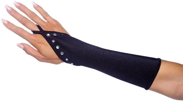 Roma Costume Bedazzled Gloves with Rhinestones, Black, One Size