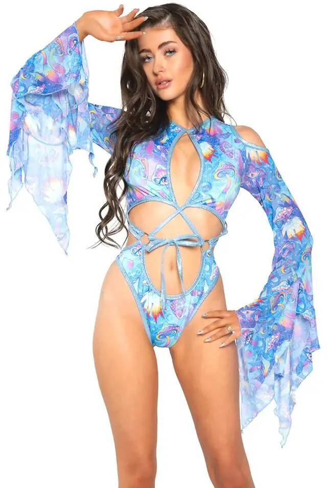 Roma Costume Spandex/Mesh Flow Bodysuit, Mystic Mushroom, S