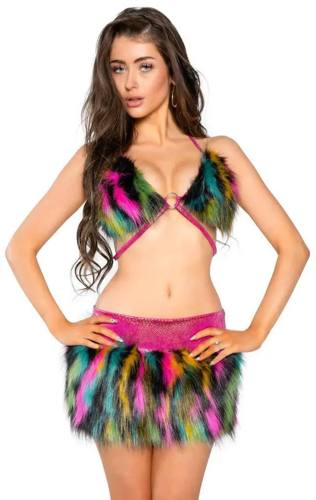 Roma Costume Faux Fur Triangle Top, Black Multi, L/XL