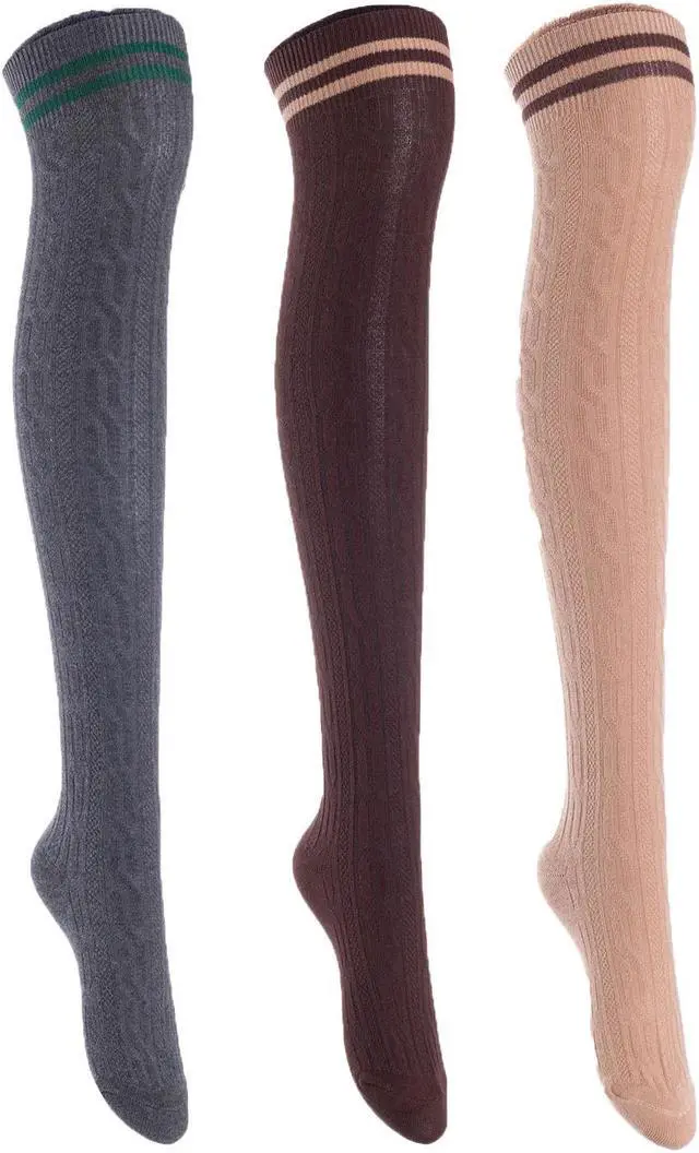 Lian LifeStyle Women's 3 Pairs Adorable Comfortable Soft Thigh High Over Knee High Cotton Socks Size 6-9 L1023(DarkGrey,Coffee,Khaki)