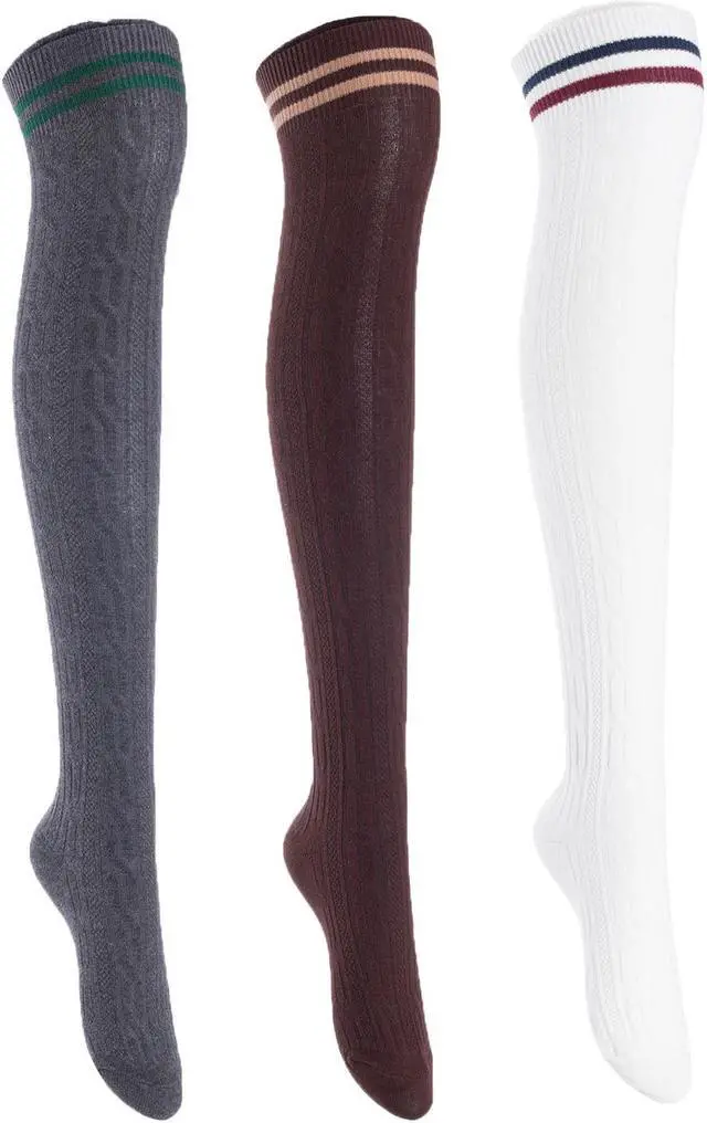 Lian LifeStyle Women's 3 Pairs Adorable Comfortable Soft Thigh High Over Knee High Cotton Socks Size 6-9 L1023(DarkGrey,Coffee,White)
