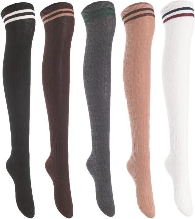 Lian LifeStyle Exquisite Big Girl's Women's 5 Pairs Thigh High Cotton Socks. Super Comfortable Female Socks in Vibrant Colors Size 6-9 L1023(Blk,Cof,DG,Kaki,Wite)
