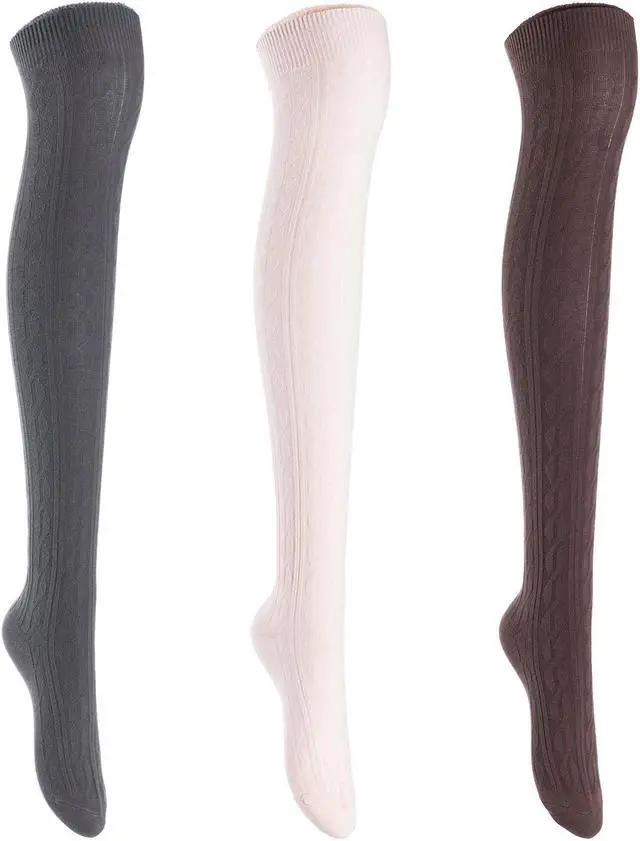 Lian LifeStyle Exquisite Big Girl's Women's 3 Pairs Thigh High Cotton Socks. Super Comfortable Female Socks in Vibrant Colors 6-9 L1024 (Coffee,Beige,Dark Grey)