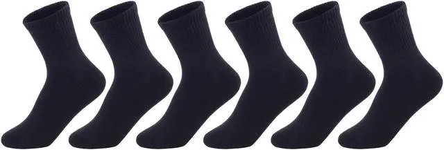 Lian LifeStyle Children's 6 Pairs Premium Cotton Socks Lightweight & Effective Crew Socks- Sweat Absorbent Size M(9Y-12Y) JH0108 Black