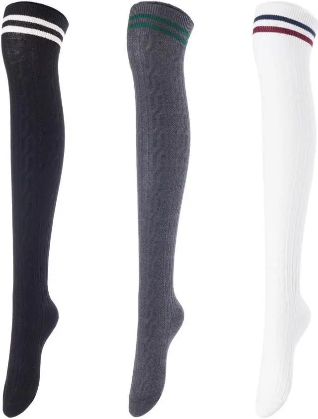 Lovely Annie Women's 3 Pairs Incredible Durable Super Soft Unique Over Knee High Thigh High Cotton Socks Size 6-9 A1023(Black,DarkGrey,White)
