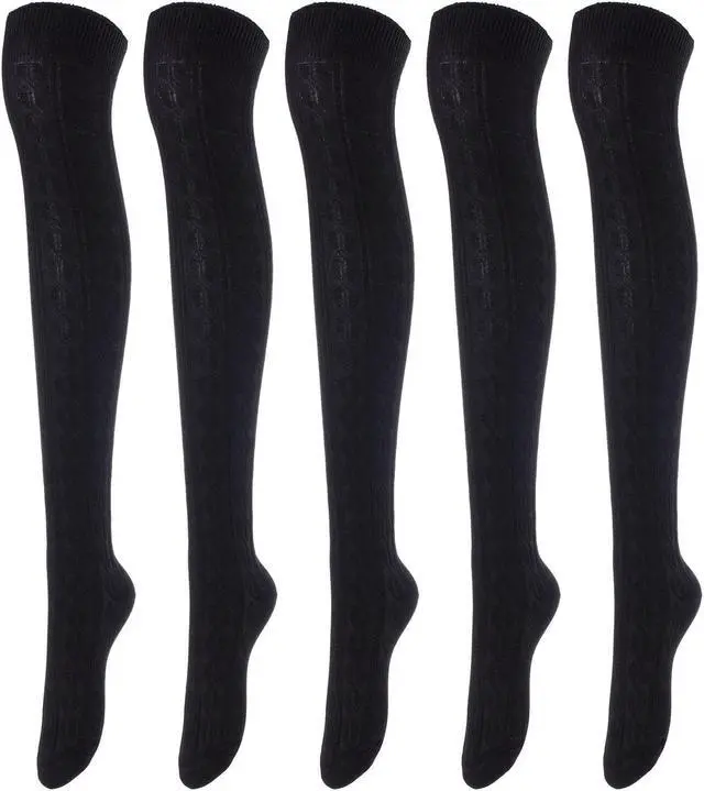 Lovely Annie Women's 5 Pairs Incredible Durable Super Soft Unique Over Knee High Thigh High Cotton Socks Size 6-9 A1024 (Black)