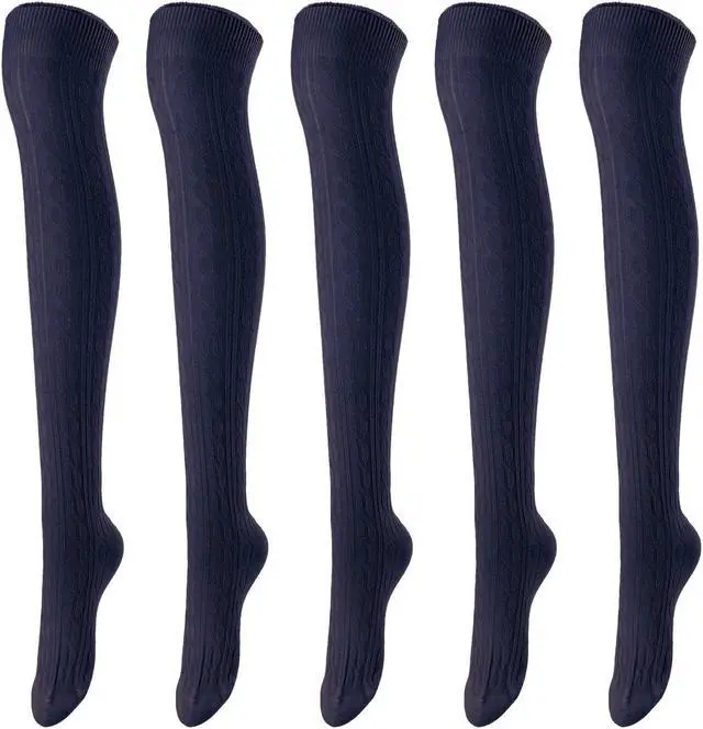 Lovely Annie Women's 5 Pairs Incredible Durable Super Soft Unique Over Knee High Thigh High Cotton Socks Size 6-9 A1024 (Navy)