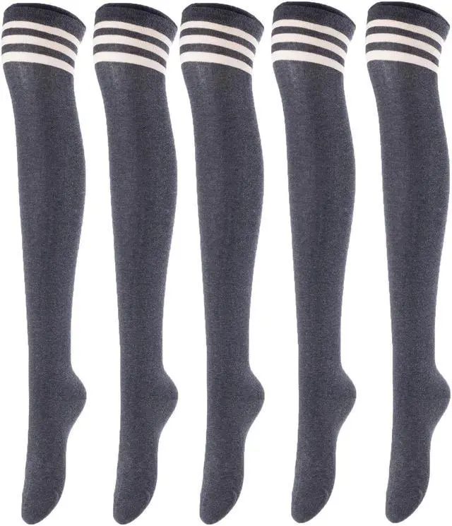 Lovely Annie Women's 5 Pairs Incredible Durable Super Soft Unique Over Knee High Thigh High Cotton Socks Size 6-9 A1022(Dark Grey)