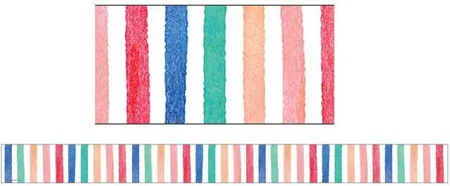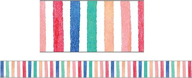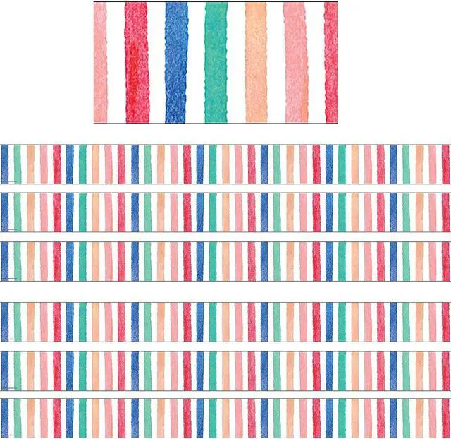 Use colorful border trim to liven up your classroom! Create fresh looks for bulletin boards, windows, walls, and class projects. Mix and match with coordinating products (stickers, notepads, awards, etc.) for a classroom theme. Each pack has 12 pieces (3'' x 35'') for a total length of 35 feet of trim. Sold as 6 packs for a total of 72 strips (210 feet).