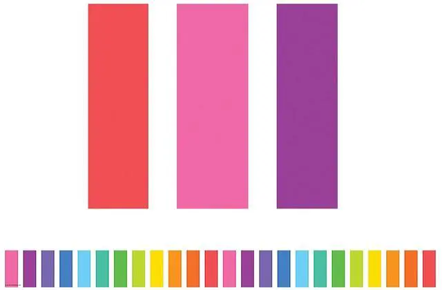 Use colorful border trim to liven up your classroom! Create fresh looks for bulletin boards, windows, walls, and class projects. Mix and match with coordinating products (stickers, notepads, awards, etc.) for a classroom theme. Each pack has 12 pieces (3'' x 35'') for a total length of 35 feet of trim! Sold as 6 packs for a total of 72 strips (210 feet).